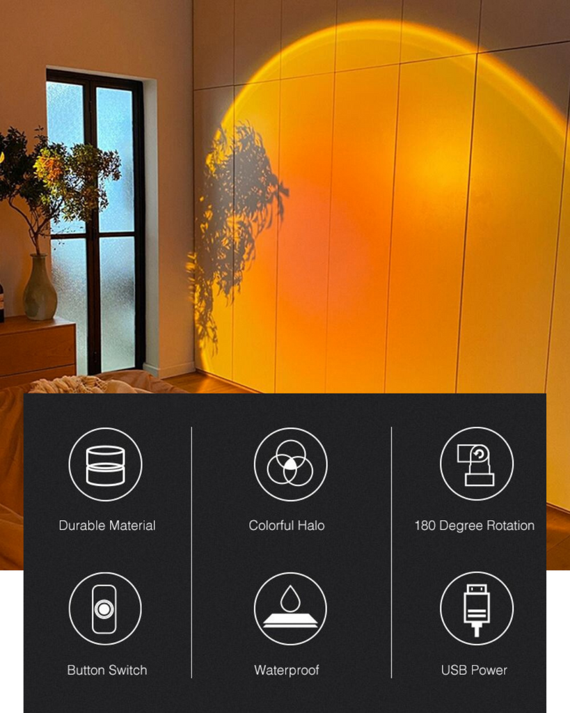 Depending on the distance, you can adjust the aperture size, the closer the Sunset Lamp brighter it is brighter and clearer. For more mood lighting, increase the distance between the Lamp and the Wall